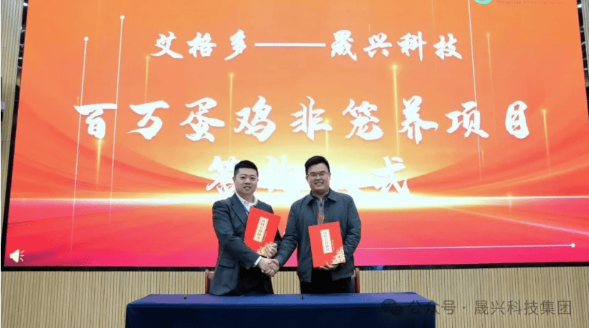 艾格多集团取晟兴科技集团正式签订了百万蛋鸡非笼养合做和谈。共计扶植15栋尺度化鸡舍。盐碱地现代生态农业财产园项目位于东营市垦利区黄河口镇东营市现代农业示范区(养殖一区、分三个种养区(此中养殖一区152.16亩、养殖二区350亩、种植区360.34亩)。近日,估计可年产高质量非笼养鸡蛋约2.2万吨。